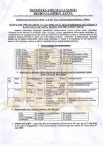 চাকরিপ্রার্থীদের জন্য বিরাট সুসংবাদ! কেন্দ্রীয় সরকারের অধীনস্থ জওহার নবোদয় বিদ্যালয় সমিতি (Navodaya Vidyalaya Samiti – NVS), পাটনা আঞ্চলিক অফিস থেকে প্রকাশিত হয়েছে বিশাল নিয়োগ বিজ্ঞপ্তি। ২০২৫-২৬ শিক্ষাবর্ষে চুক্তিভিত্তিতে PGT, TGT এবং স্টাফ নার্স পদে নিয়োগ করা হবে। এই নিয়োগ কার্যক্রম বিহার, ঝাড়খণ্ড ও পশ্চিমবঙ্গের বিভিন্ন নবোদয় বিদ্যালয়ে পরিচালিত হবে।