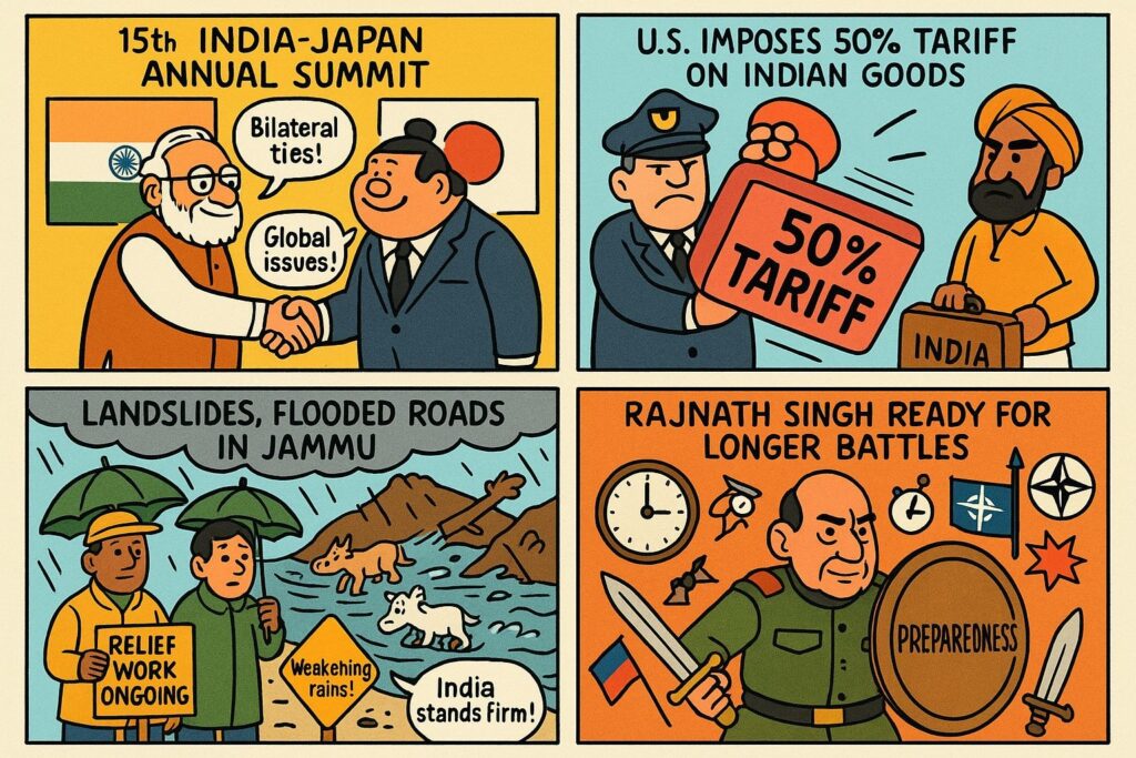 2. Economy: US imposes a harsh 50% tariff on Indian goods over Russian oil purchases, escalating trade tensions. India resists pressure, vows to stand firm. 💼
