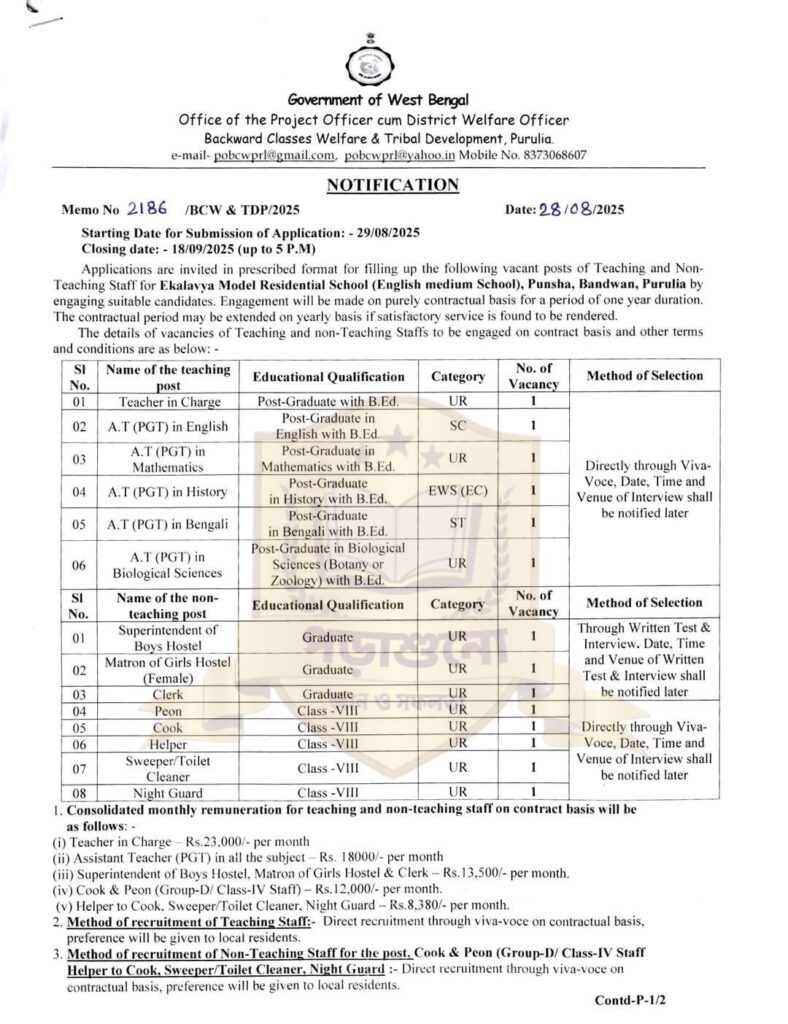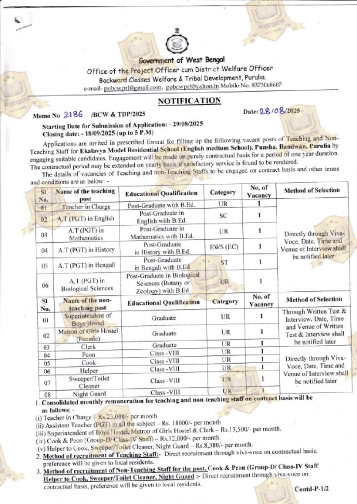 5ī¸âŖ āϏāĻšāĻāĻžāϰ⧠āĻļāĻŋāĻā§āώāĻ (PGT) āĻŦāĻžāĻāϞāĻž â Post-Graduate in Bengali with B.Ed. â ā§§āĻāĻŋ āĻĒāĻĻ (ST)