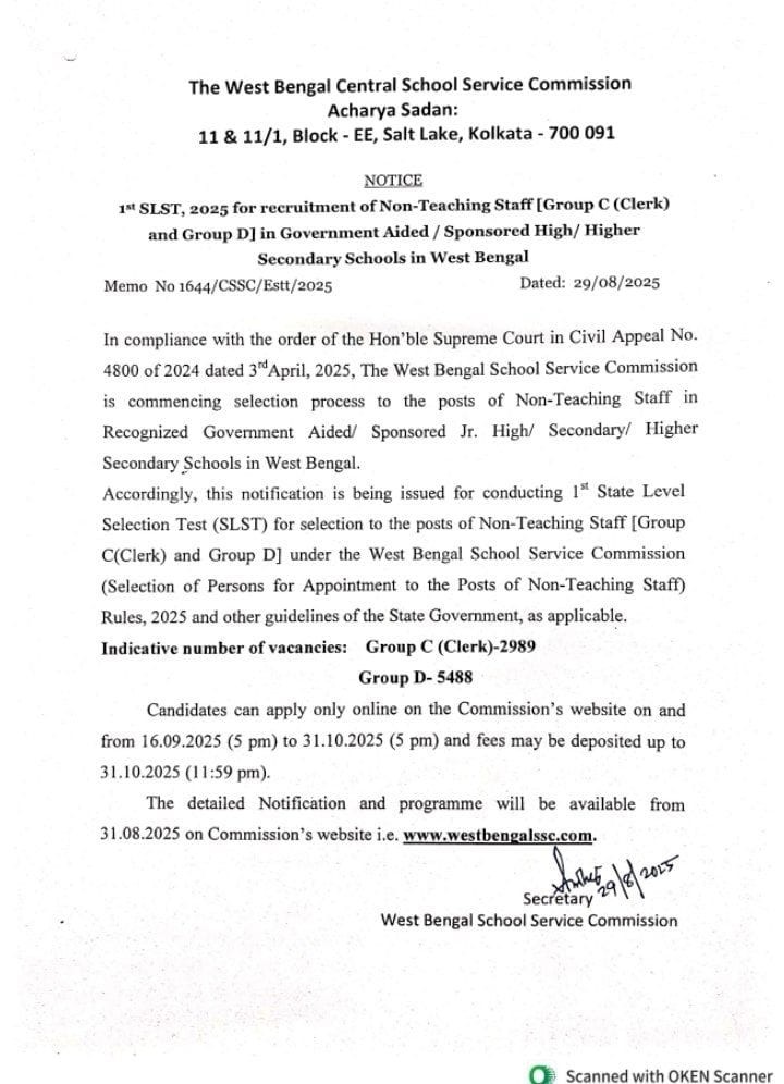 West Bengal SSC Recruitment 2025, WBSSC Group C Clerk Vacancy 2025, WBSSC Group D Vacancy 2025, West Bengal School Service Commission Notification 2025, WBSSC SLST 2025, West Bengal Clerk Recruitment 2025, West Bengal Group D Recruitment 2025, WBSSC Online Application 2025, WBSSC Official Website, WBSSC Latest Notification, West Bengal SSC Jobs 2025, West Bengal Non Teaching Staff Recruitment 2025, WBSSC Vacancy Details 2025, Clerk Vacancy in West Bengal Schools, Group D Vacancy in West Bengal Schools, SSC Recruitment in West Bengal 2025, WBSSC Apply Online 2025, SLST Notification 2025 West Bengal, WBSSC Govt Jobs 2025, West Bengal School Clerk Group C 2025, West Bengal School Group D 2025