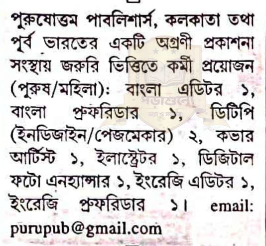 KEYWORDS, HASHTAGS: publication job kolkata, bengali editor job, bengali proofreader vacancy, dtp job kolkata, indesign pagemaker job, illustrator job kolkata, cover artist job, digital photo enhancer job, english editor job, english proofreader job, publishing house vacancy, kolkata publishing job, porashuno, porasona, porashona, porasuna, porashuna, পড়াশোনা, পড়াশুনা