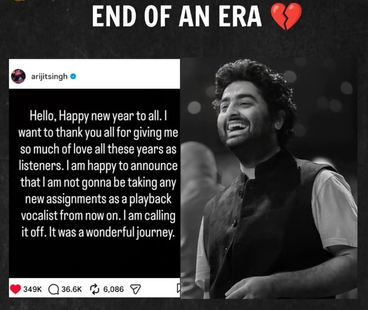 নিজের পোস্টে অরিজিৎ সিং লেখেন, “Hello, Happy new year to all. I want to thank you all for giving me so much of love all these years as listeners. I am happy to announce that I am not gonna be taking any new assignments as a playback vocalist from now on. I am calling it off. It was a wonderful journey.” এই ঘোষণার পরই সোশ্যাল মিডিয়া এবং সংগীত জগতে ব্যাপক আলোড়ন সৃষ্টি হয়েছে।